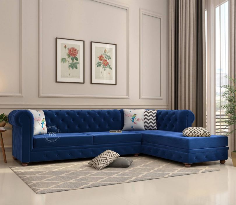 <p><strong>About Material & Color: </strong>Made of premium-quality Velvet, this fabric L-Shape sofa is sturdy in nature and offers long-lasting durability. The three fabric colour options available for this unit are Graphite Grey, Chestnut Brown and Indigo Blue.</p><p><strong>Manufacturing Details & Stringent Quality Checks: </strong>Our artisans ensure every minute details to achieve the extreme accuracy and level of perfection. The final product, before reaching to your doorstep, passes through stringent quality checks.</p><p><strong>Product Features: </strong>Henry L shape right-aligned corner sofa is an excellent choice of seating to infuse class and elegance to your interiors. The panel rolled arms, and tufted backrest, of this fabric L shape sofa, reflect chesterfield style, giving it a grandeur look. The base frame of this dynamic L shape right-aligned sofa is crafted from pure Sheesham wood that guarantees its long-lasting durability.<br> </p>
